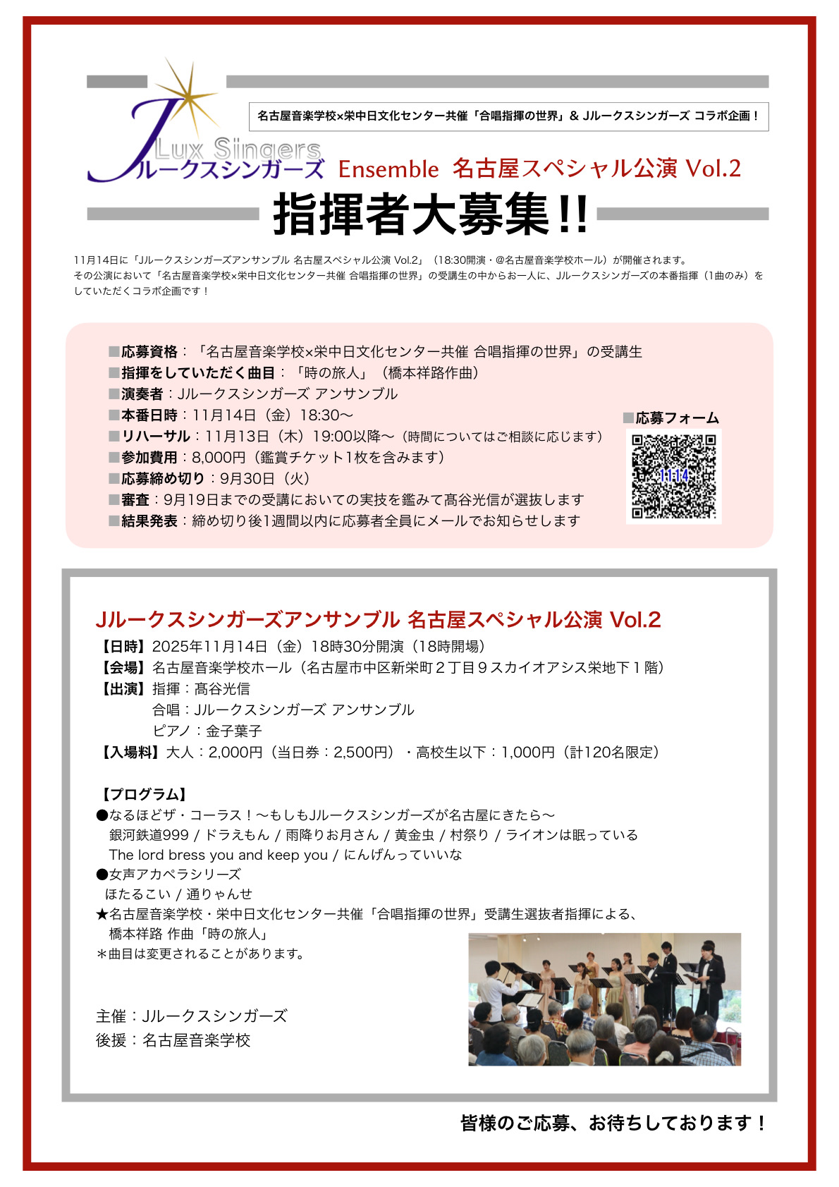 Jルークスシンガーズ「名古屋スペシャルアンサンブル公演 Vol.2」にて